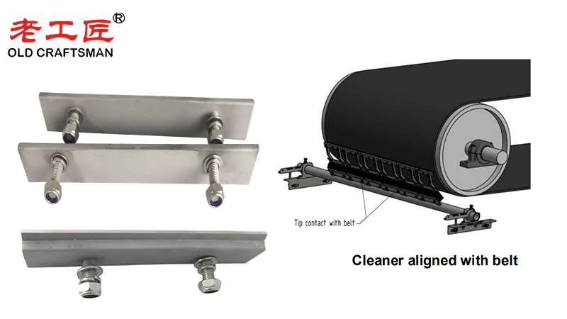 These cleaners work best as secondary units following a primary scraper (often urethane for bulk removal). Proper installation is critical: align with the belt path, use appropriate tension (self-adjusting options help), and maintain a negative rake angle where possible to protect splices and the belt.
